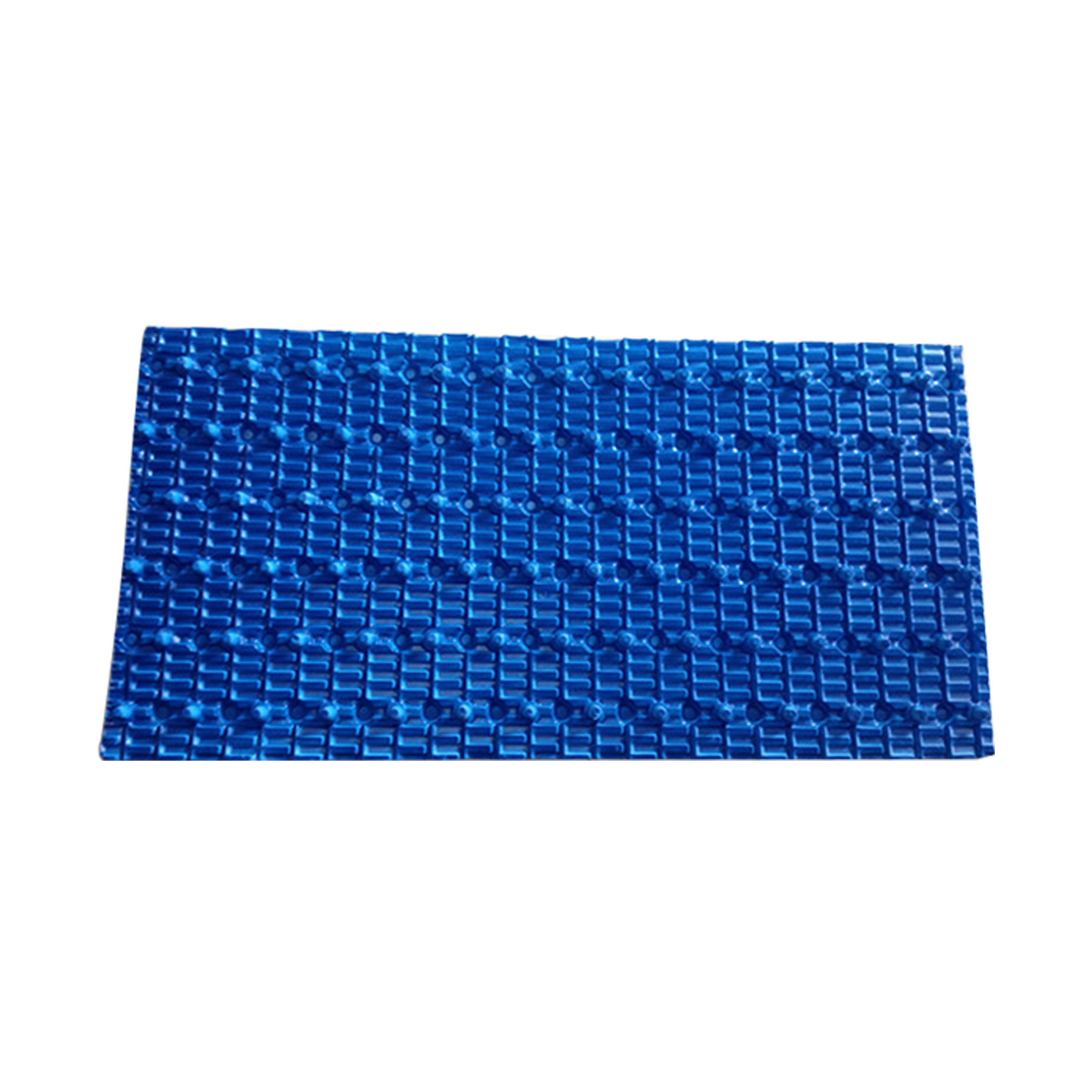 Good flame retardant, oxygen index ≥40. The folded board surface strengthens the turbulence of water flow and air, its heat dissipation area is increased, and the coefficient is larger. The conical protruding parts at the mouth of the plate not only play the role of protecting the distance between the sheets, but also make the water flow layer falling between the sheets splash into small water droplets, so that the dripping performance of this filler improves the cooling effect, and the water distribution is uniform, the surface area is large, and the comprehensive performance is better.